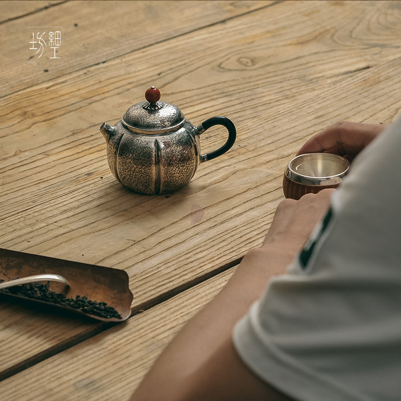 Fine Works Workshop Japan Pure Handmade Pure Silver 9999 Silver Pot Pure Silver Kung Fu Tea With Silver Small Rush Requires Small Silver Pot Tea Ware