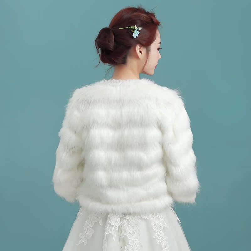 2021 new bridal shawl dress thickened warm wool shawl autumn and winter long-sleeved wedding small coat white female