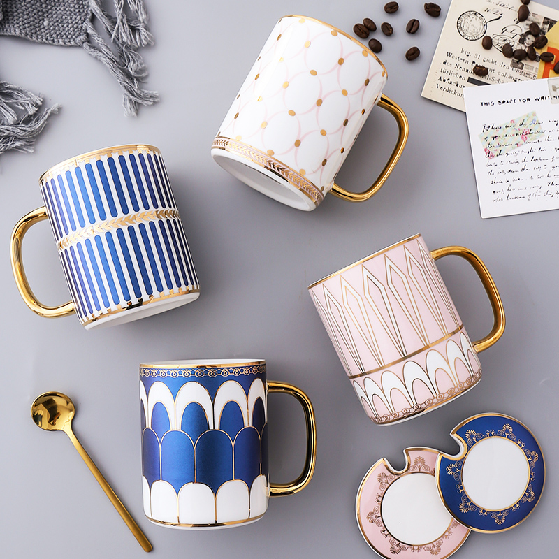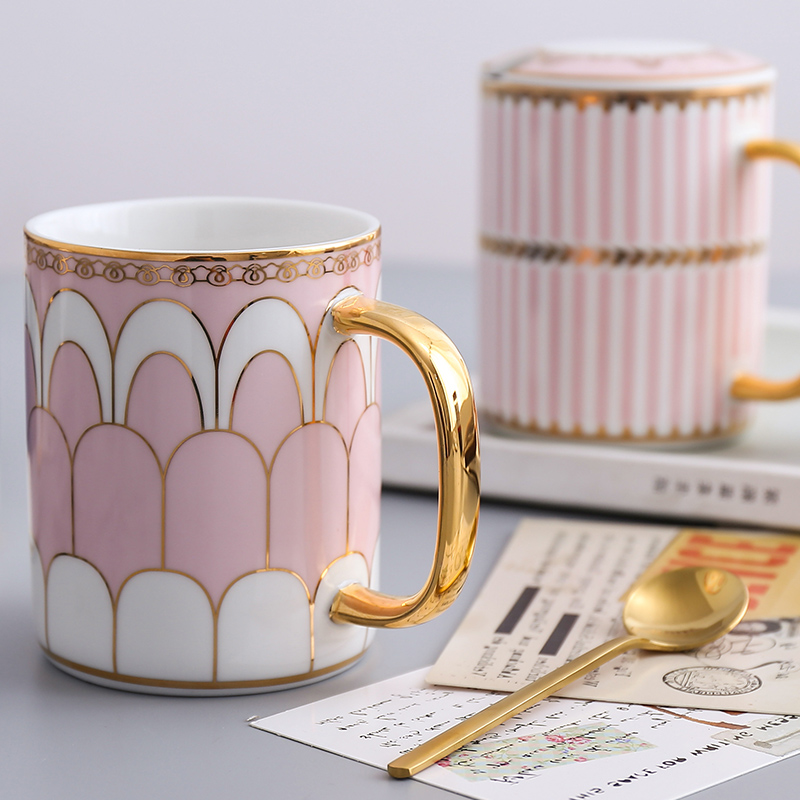 Nordic minimalist Mark water Cup ceramic large capacity custom European couple tea cup coffee cup with lid spoon