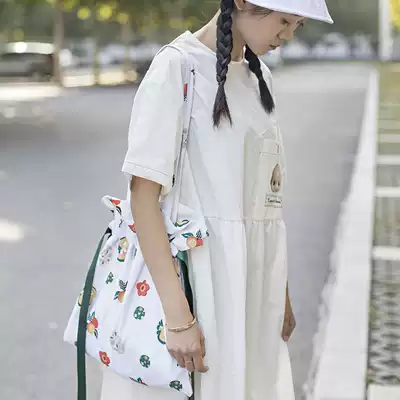 Ruosuliang product ins one-shoulder portable fairy beam mouth canvas bag Cute Japanese and Korean version of the literary and artistic small fresh bag