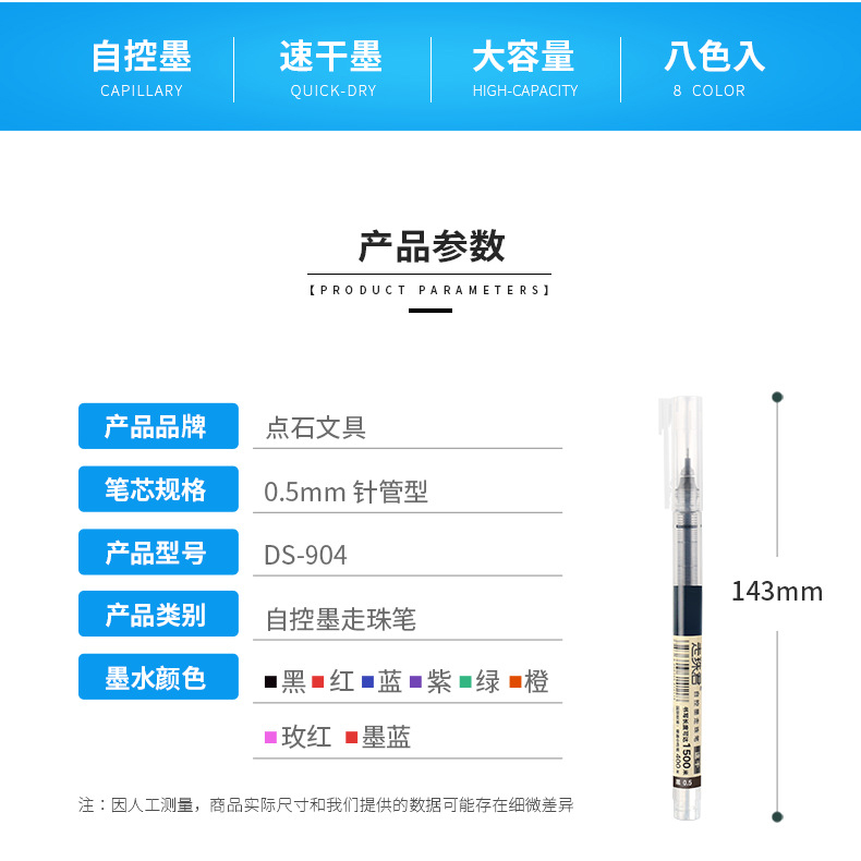 Point stone DS904 needle tube straight liquid walking bead Jun quick-drying student office neutral Japanese simple painted hand account pen T