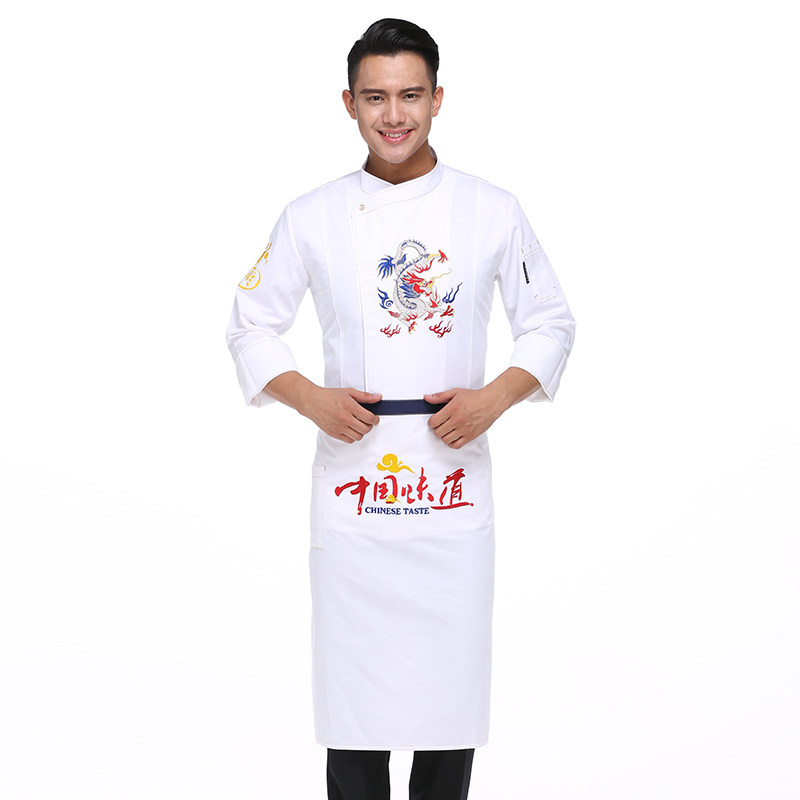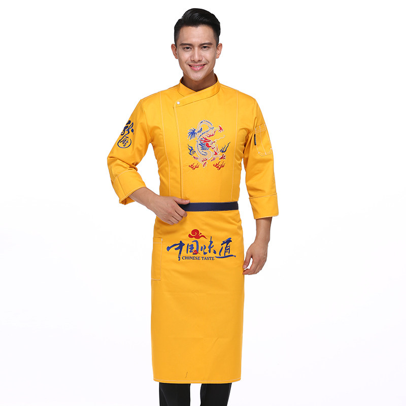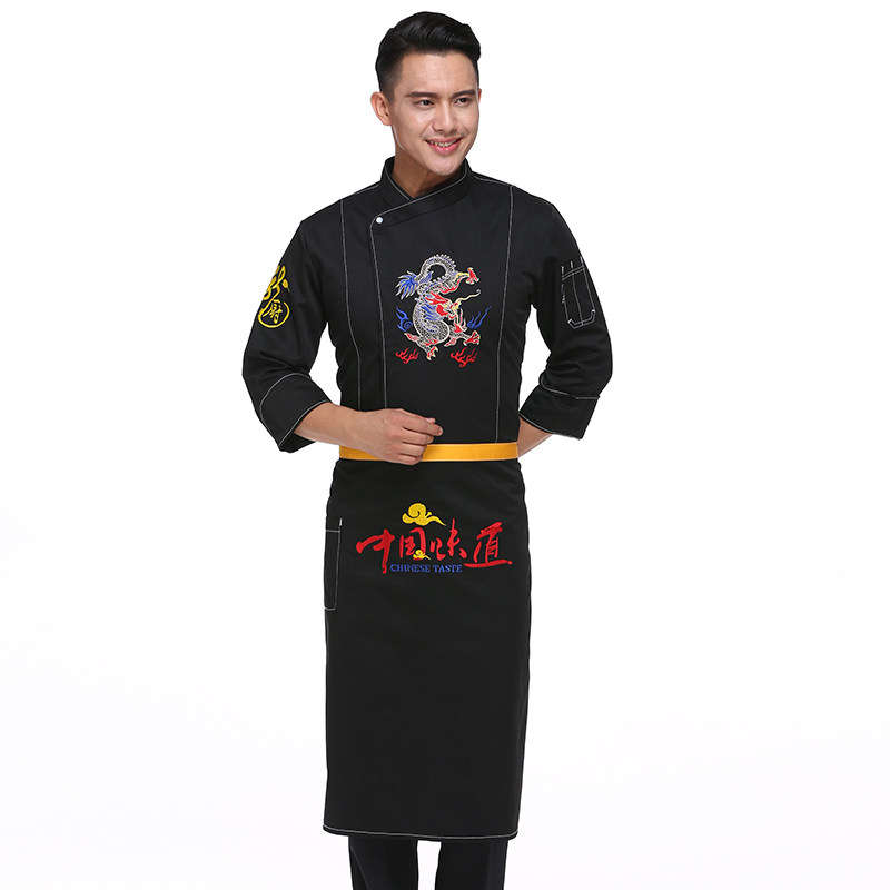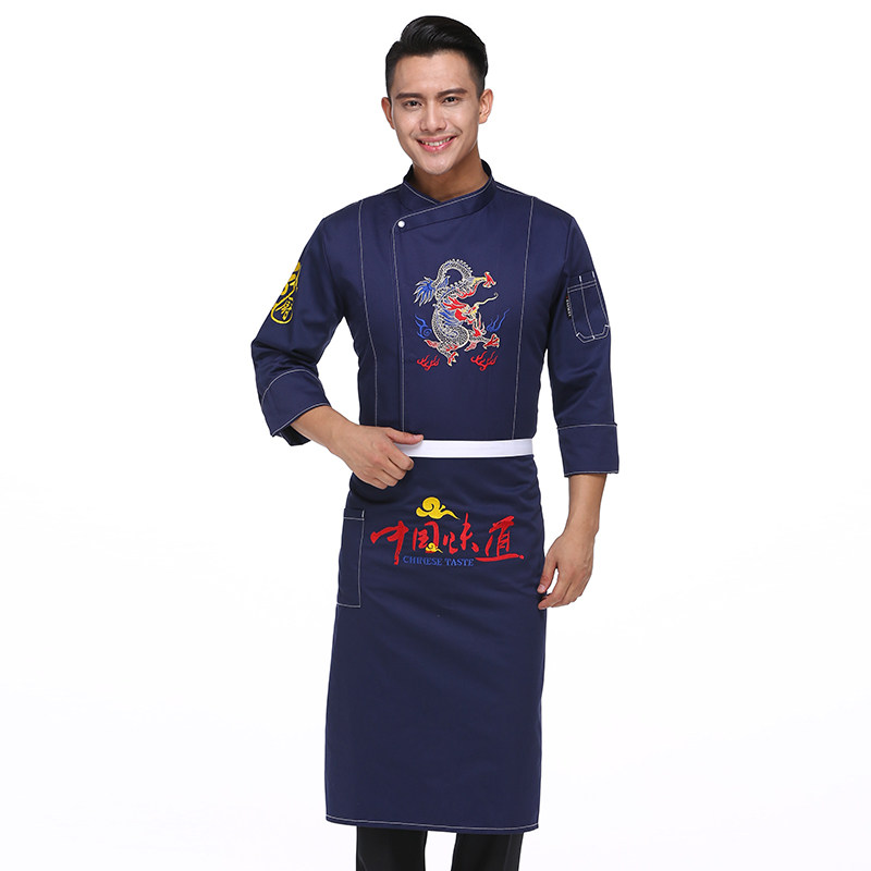 Denim fabric chef work clothes men long sleeve autumn winter chef embroidery color dragon pattern chef clothing