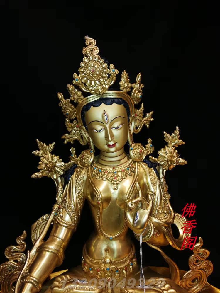 Nepal handmade 40cm bouquets full-time gold interpretation Chaldean craftsmanship White degree Mother statue of Tibetan Buddhism