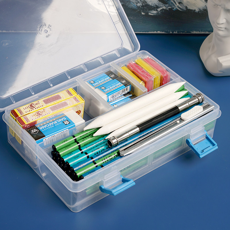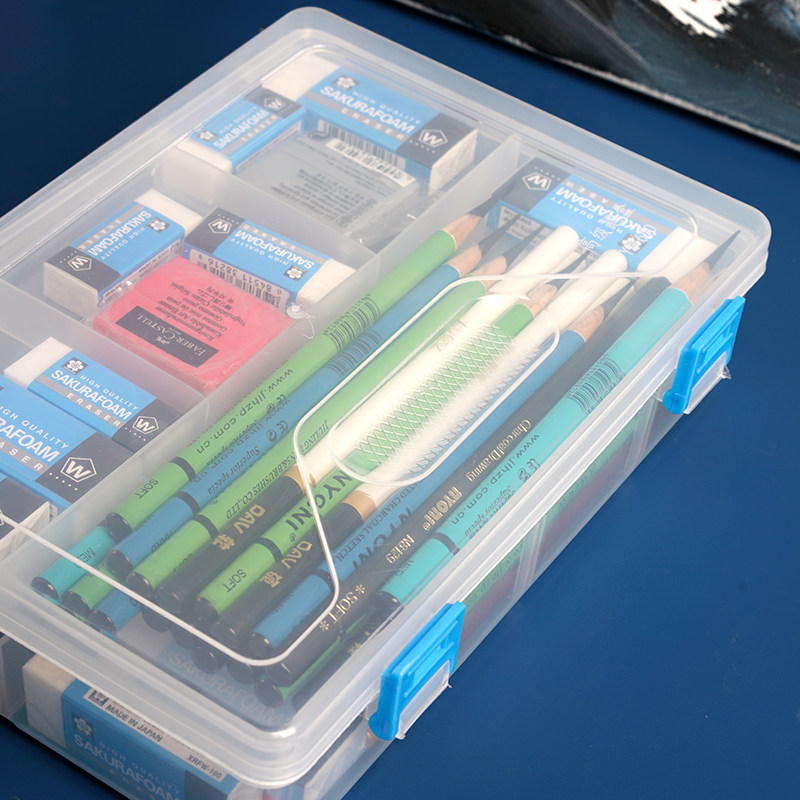 Sketch pencil box for art students to draw transparent large large capacity pencil case double-layer multifunctional storage box