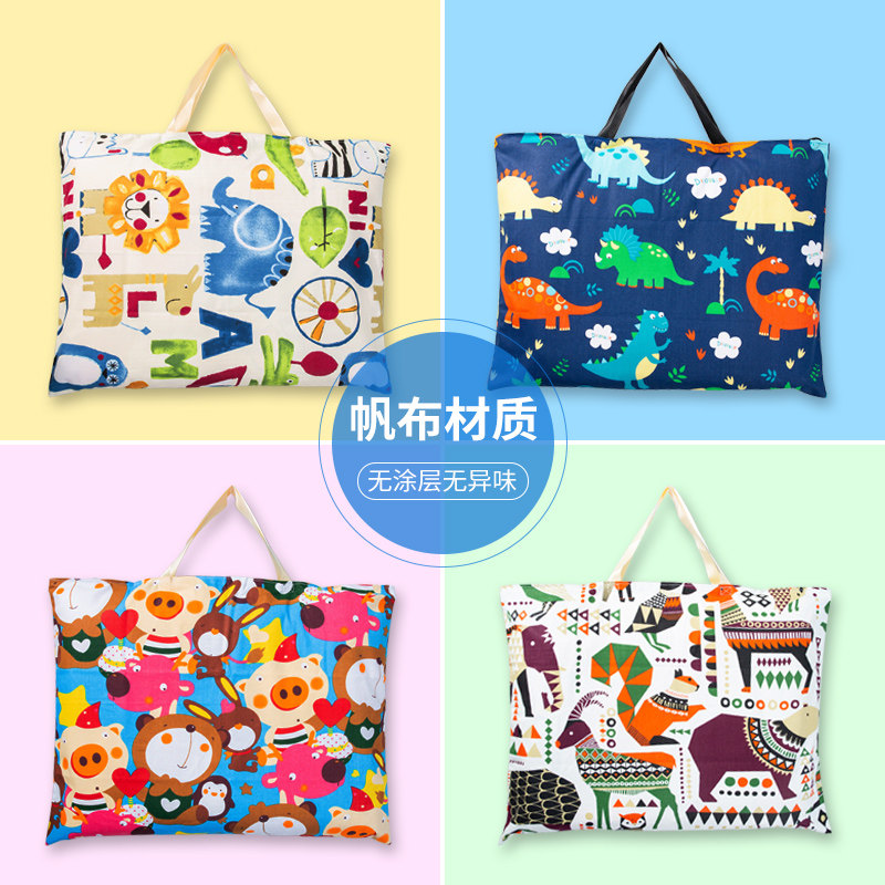 Kindergarten quilt bag children's futon bag cotton cartoon print canvas finishing storage bag tote bag washable