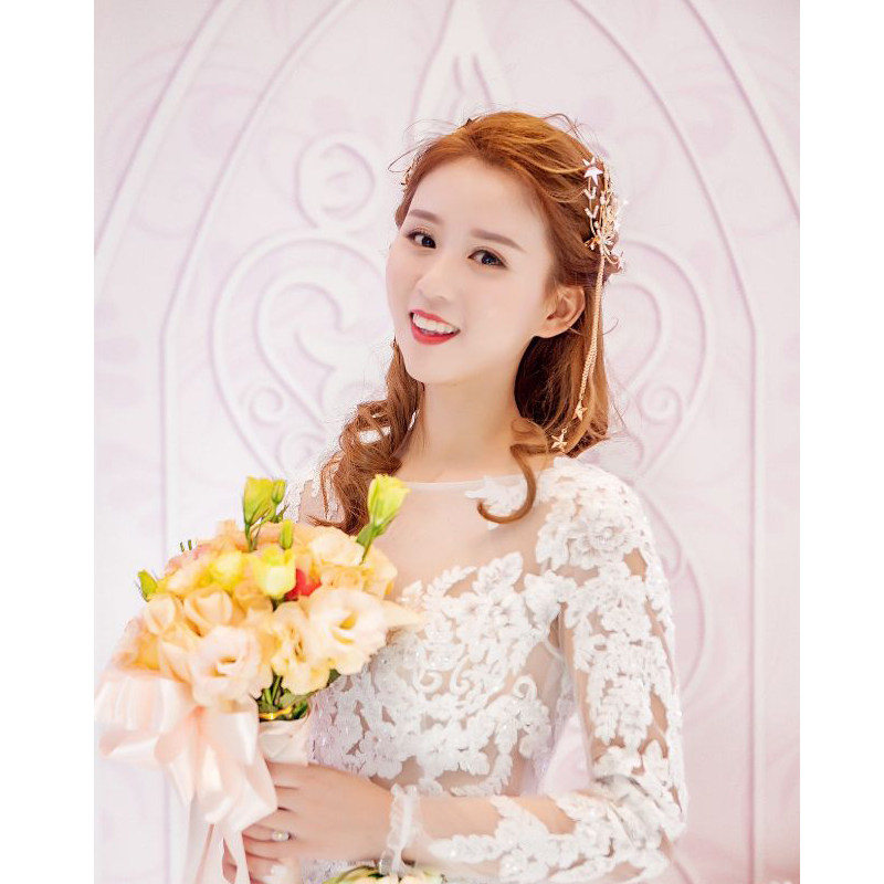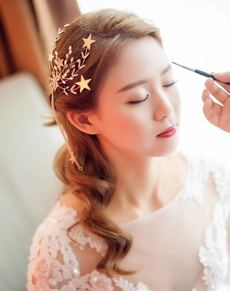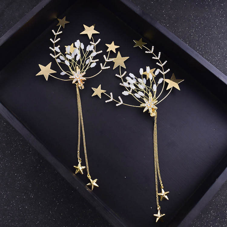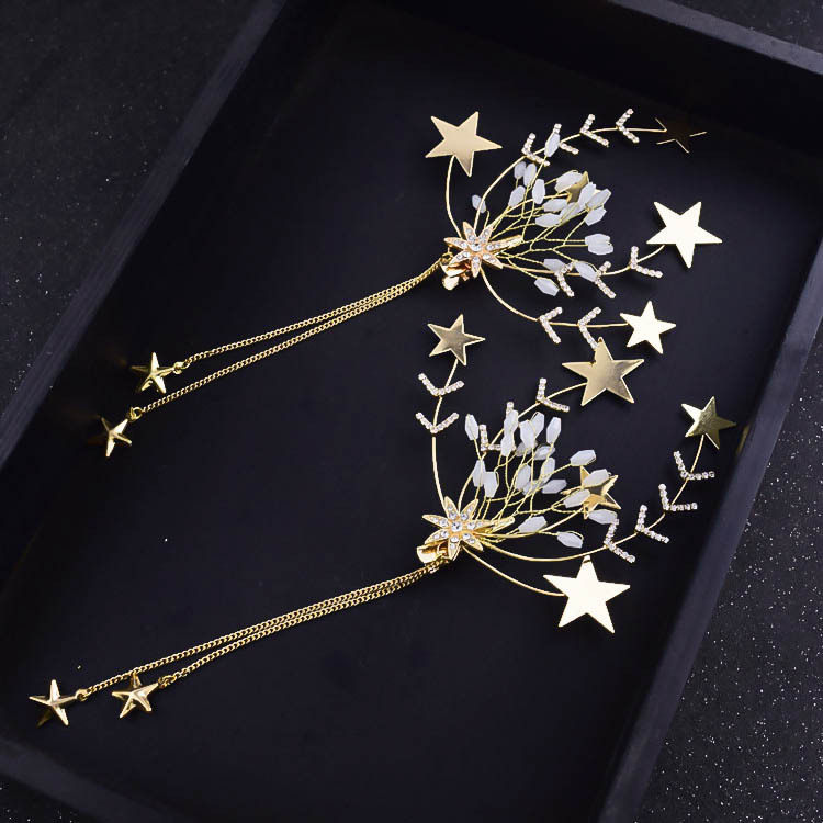 Korean Bridal Sweet to clip headgear Pendant Hair Accessories Golden Pentagonal Stars Hairpin Wedding Wedding Dress Accessories