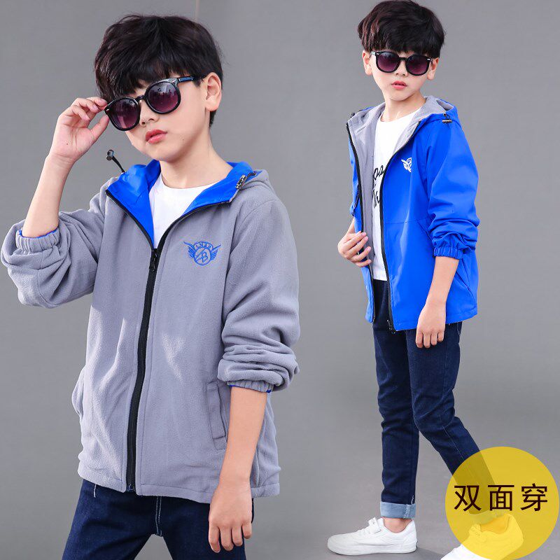 Jacket Spring Autumn Winter Clothing Two Sides Korean Version Children Rocking Grain Suede Submachine Clothes Wearing children Waterproof Boy Autumn Clothing Windproof Clothes
