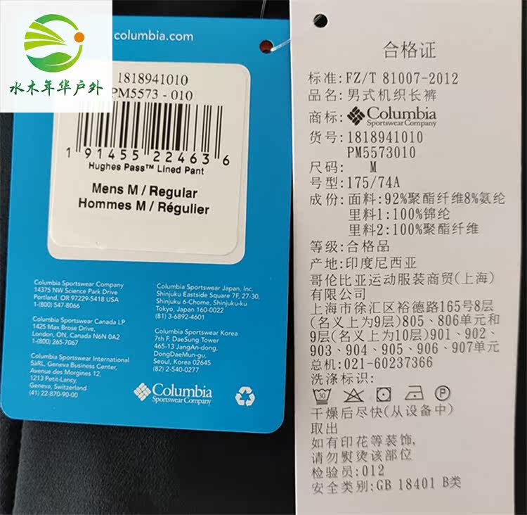 Columnia Colombia Outdoor 21 autumn winter New pint male grip suede lining thickened punching pants PM5573