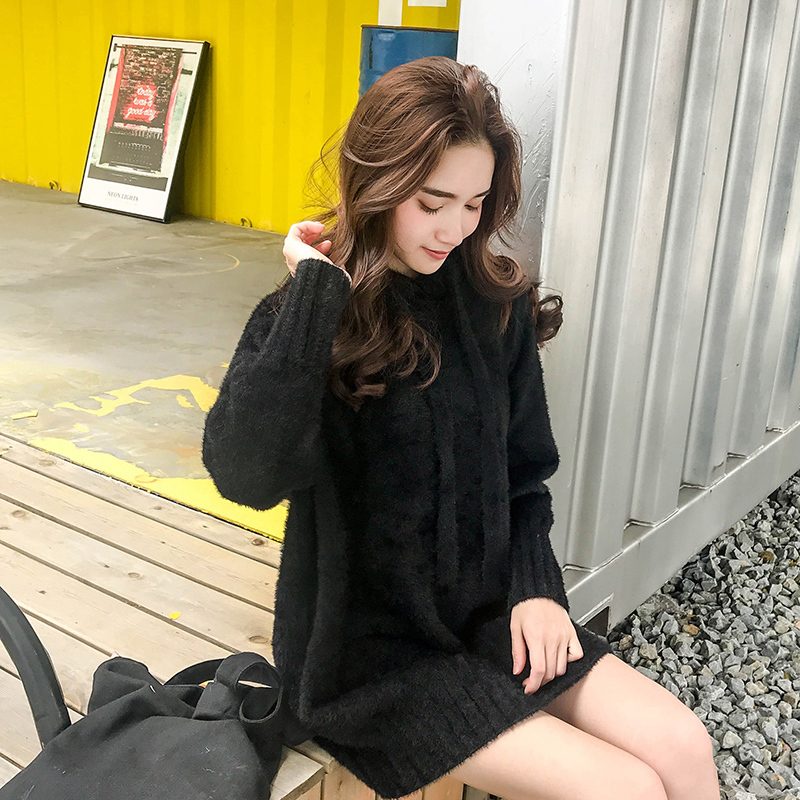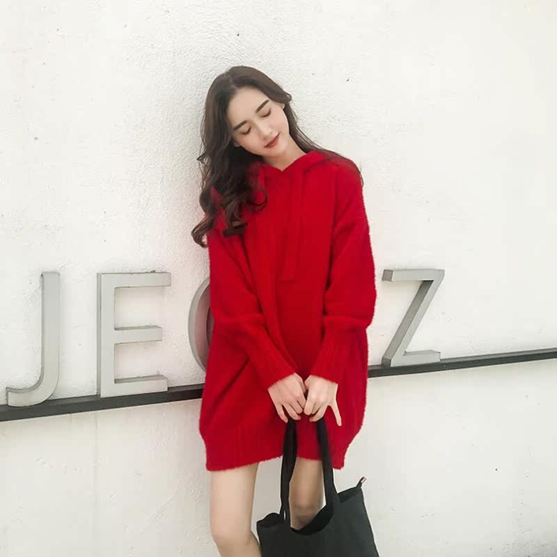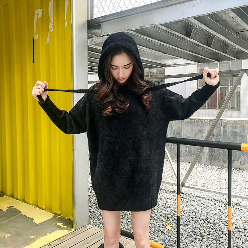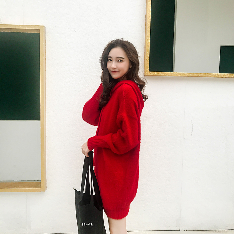 2020 new autumn and winter mink velvet jacket lazy sweater skirt medium long version sweater female hooded sweater sweater