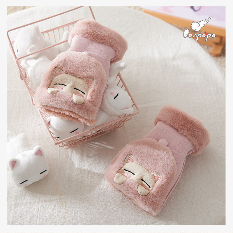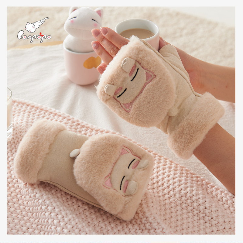 Lazy Groveling in Plush Leakage Finger Half Finger Glove Female Winter Student Han Version Cotton Dew Finger Gloves Female Winter Warm Cute
