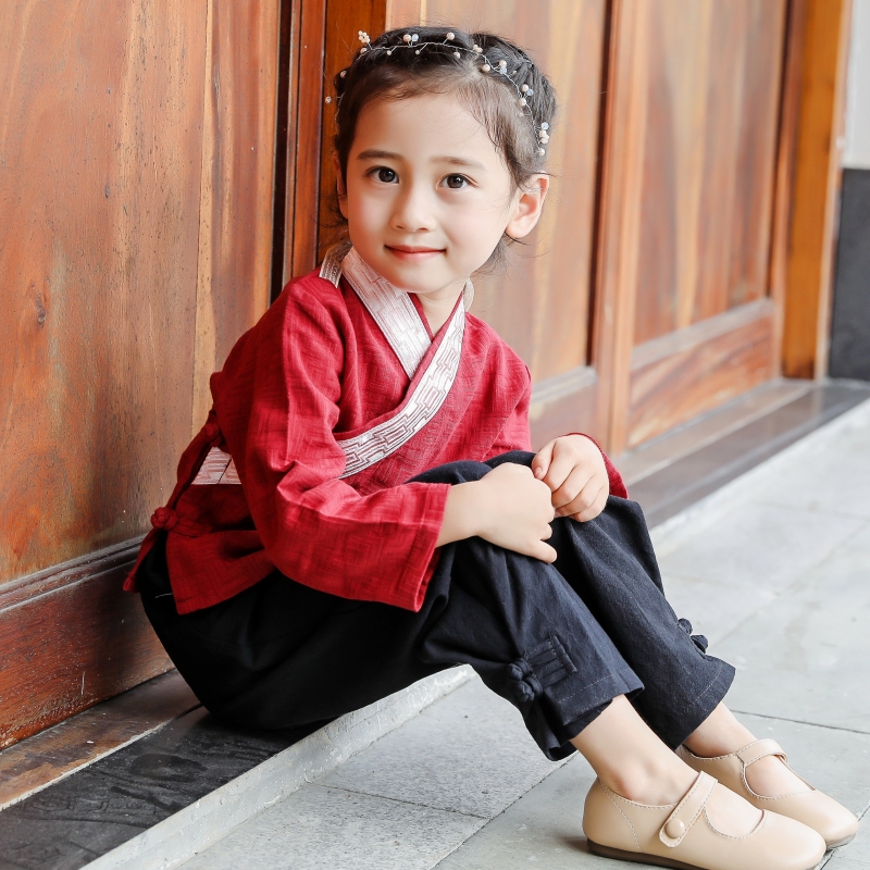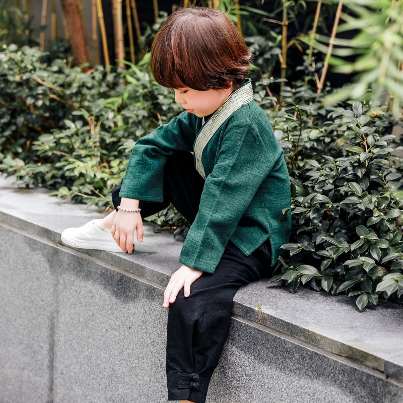 Boys cotton and linen Hanfu spring and autumn children's costume cotton and linen jacket baby Tang suit boy Hanfu two-piece suit