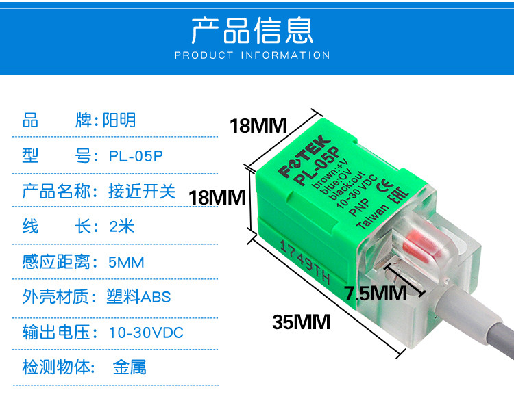 FOTEK original Yangming approached switch PL-05P three-line PNP frequent open metal close to sensor PL-05N