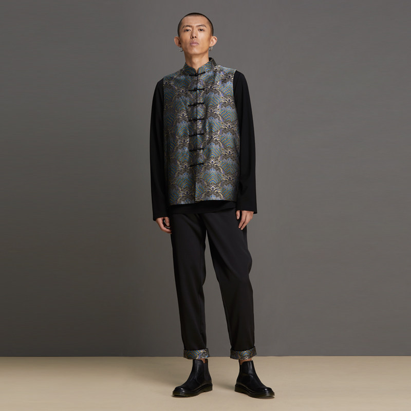 (Men's Ruins) Sunda divination China Wind-collar Chinese style disc buckle Design Improved Tang Loaded Undershirt Men's Clothing