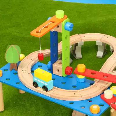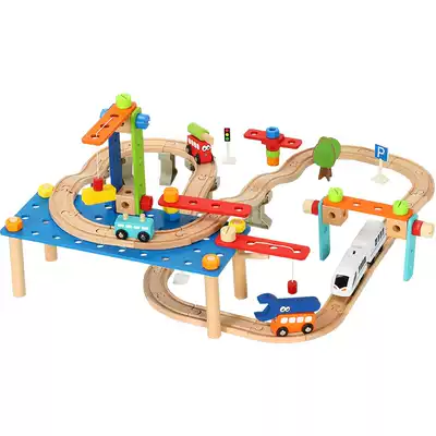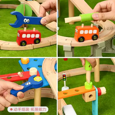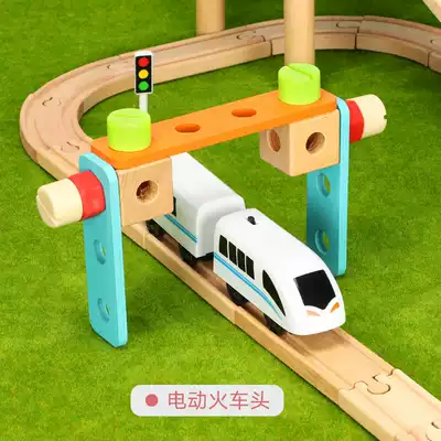 Wooden small train track set magnetic electric car head building block nut track building block children toy 3 years old