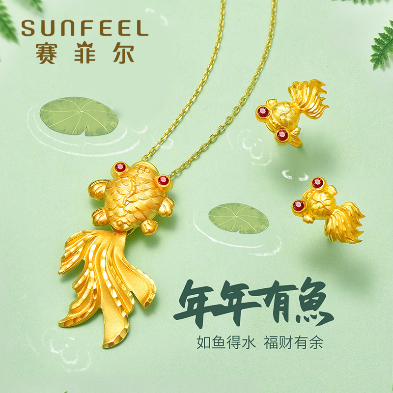 Saifir foot gold 999 9 gold ear nail goldfish ear decorated with girlfriend gift gin carp pure gold