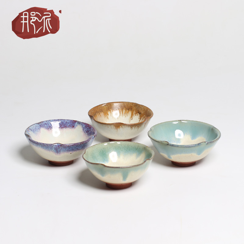 Ceramic Yixing color glazed kiln Imitation Ancient Retro Day Style Coarse Pottery Tea Tea Cup Tea Cup Tea Cup Zen of Flowers Little Cups