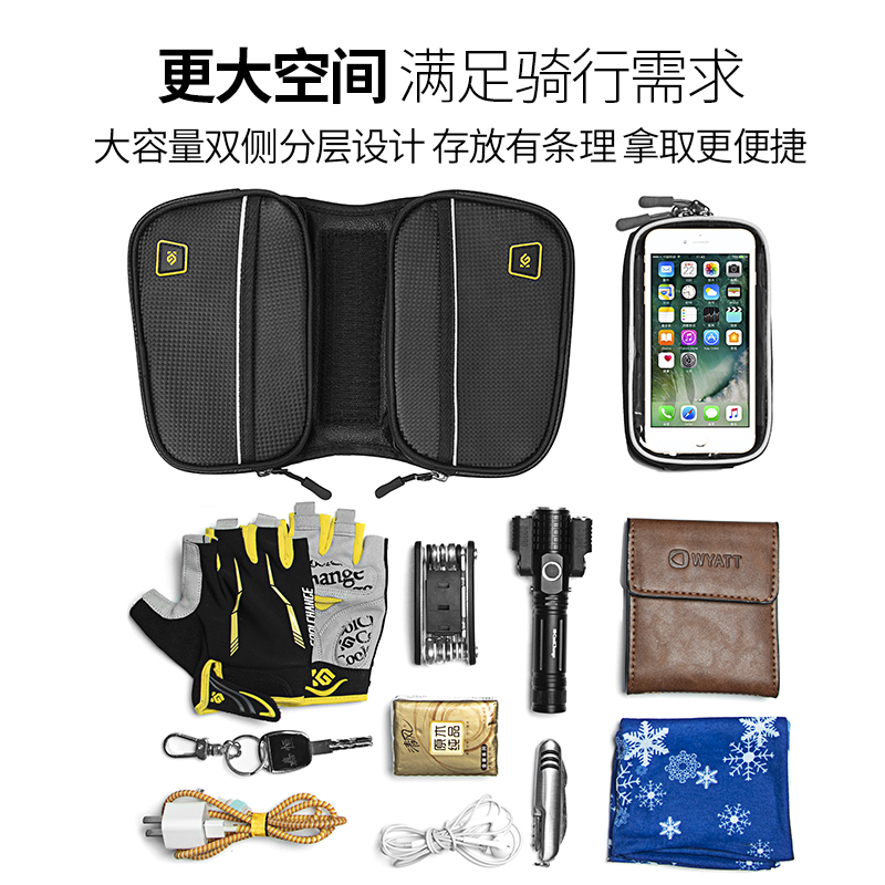 Cool change bicycle bag Front beam bag Mountain bike saddle bag Mobile phone tube bag Waterproof riding equipment accessories Daquan