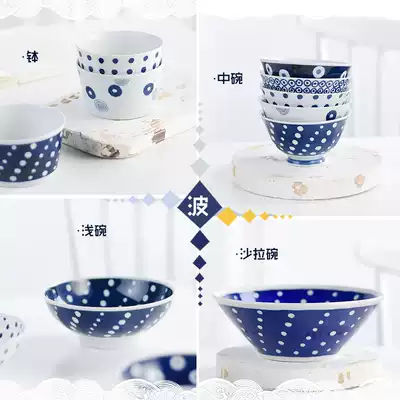 Indigo dot pattern rice bowl 5-piece set 13303Inidgo pig mouth cup five-piece set 13304 Small shallow bowl five-piece set 14051 Large shallow bowl five-piece set 13310 pairs