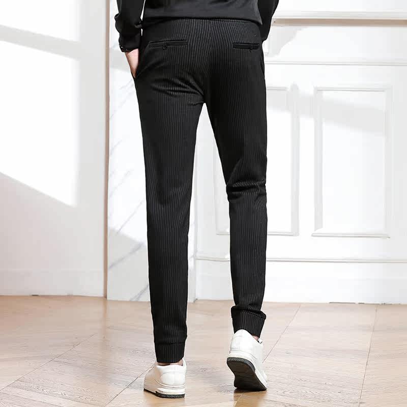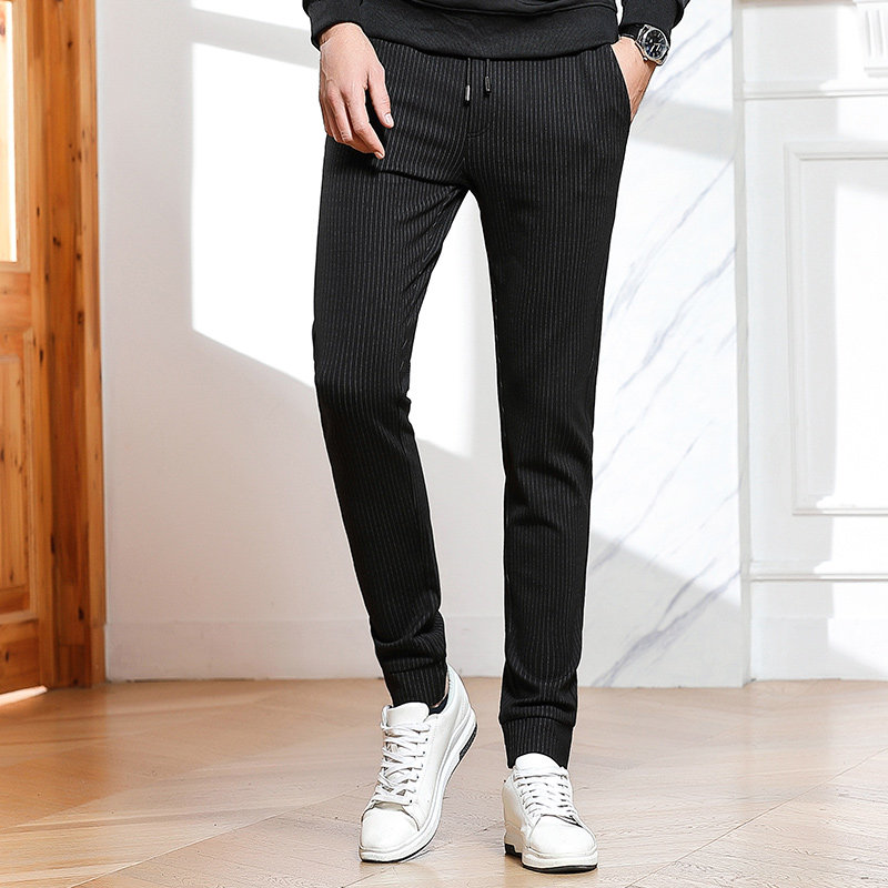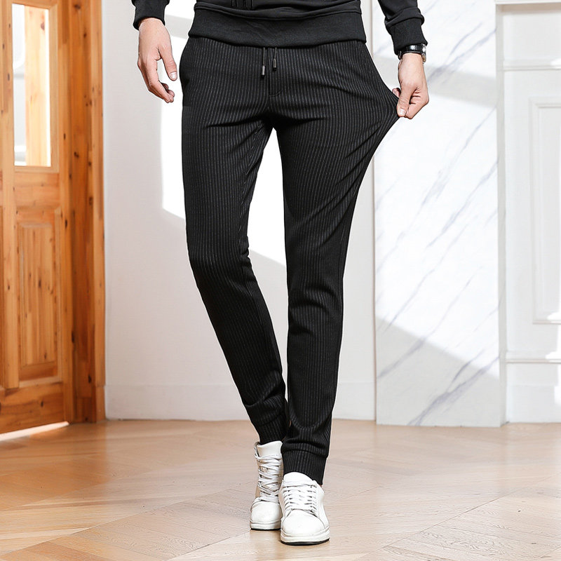 2021 autumn new casual pants men's Korean edition elastic waist stretch striped pants men's drawstring small feet sweatpants