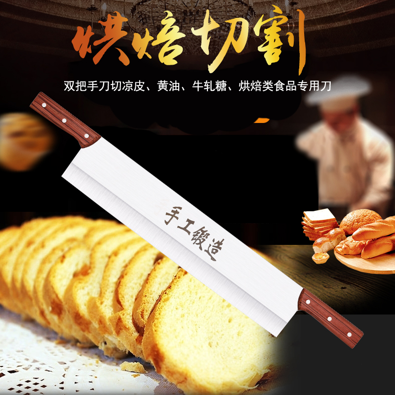 Double knife cutting donkey-hide gelatin cake strip knife extended kitchen knife double handle knife dial surface cutting yogurt cold skin nougat knife