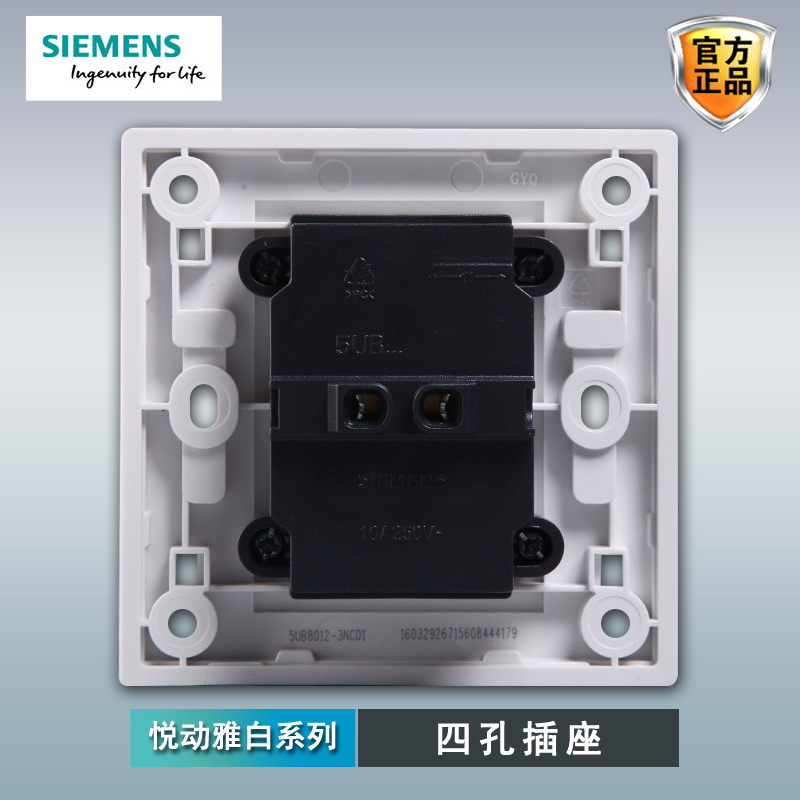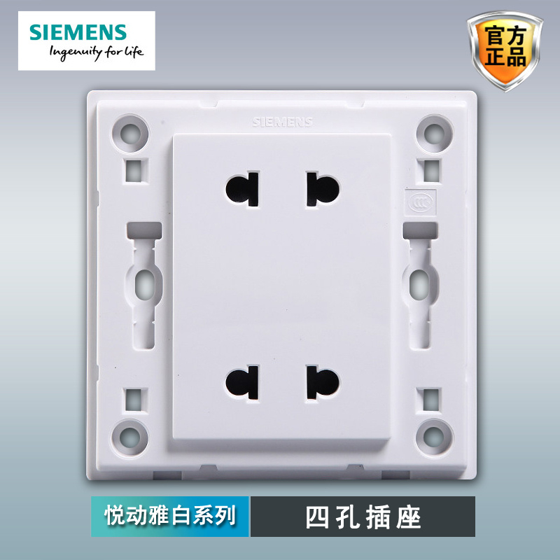 Siemens four-hole socket panel Yuedong Yabai 86 household power supply double-connected 10a two-pole flat-round dual-purpose socket
