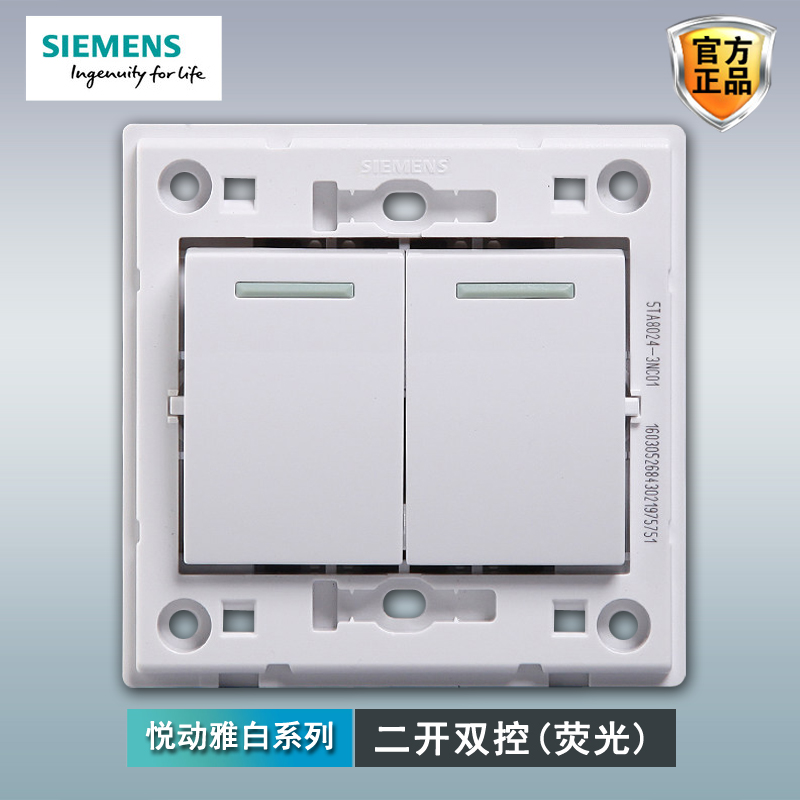 Siemens Dual Switch Double Cut Switch Panel Pleasing Elegant White Home Electric Light Wall 86 Type Power 2 open with fluorescent