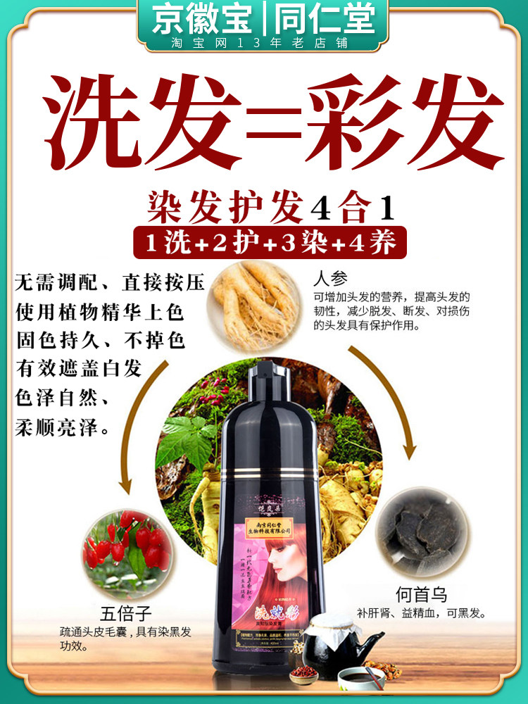 Tongren Hall One wash of color Black yourself at home Hair Dye Plant Pure 2022 Pop color White Bubble Foam