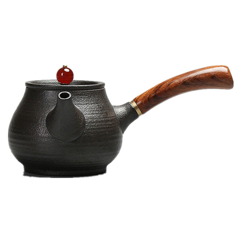 Tea pot ceramic side to open the pot of rukung fu tea pot ceramic single pot of black sandalwood handle can be maintained single pot filter pot
