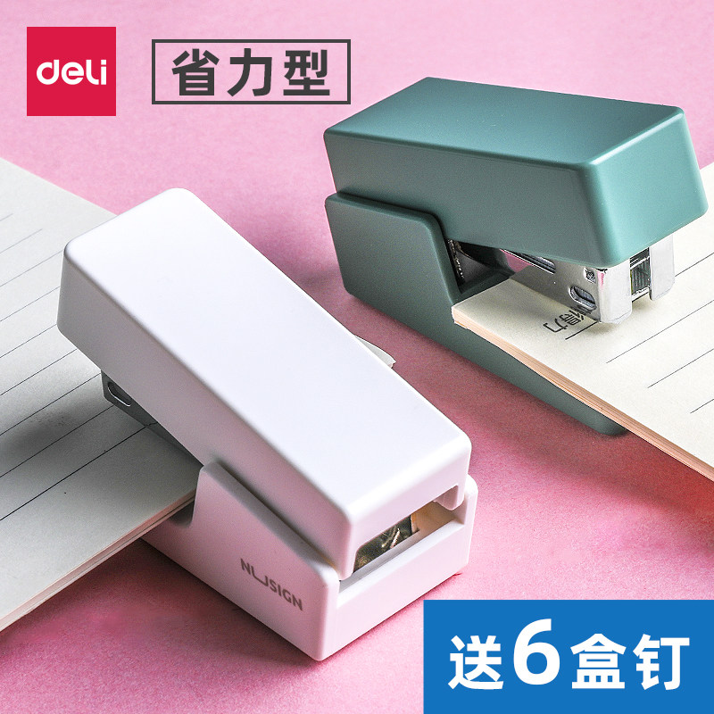 Deli mini stapler Small No 12 creative cute girl heart student stationery Standard portable stapler Fixed stapler Cartoon colorful fashion labor-saving small stapler