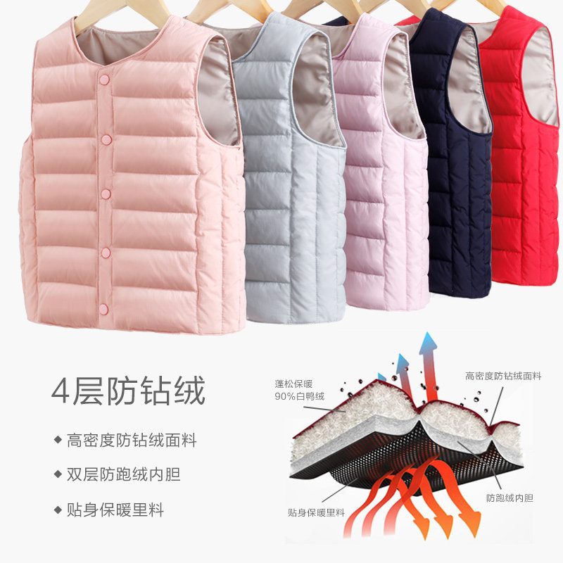 Down Vest Children's Vest Girls Boys Inner Wear Liner Big Children Autumn and Winter Warm Vest Light Thin Duck Down Vest