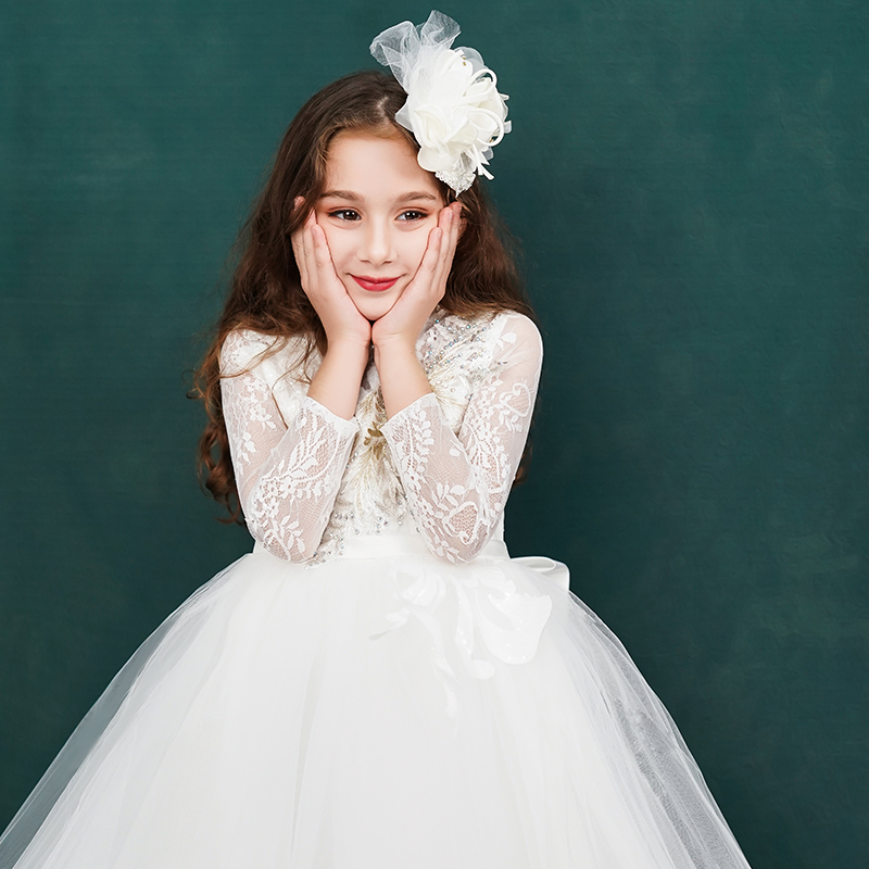 Children's dress girl princess dress fluffy wedding dress flower girl piano performance dress small host evening dress autumn