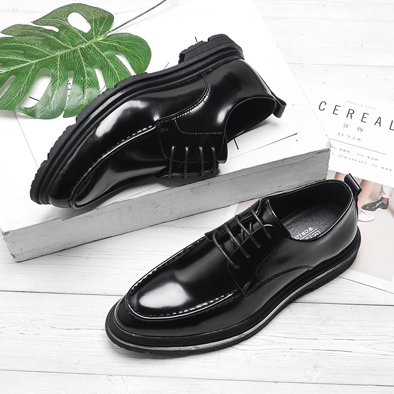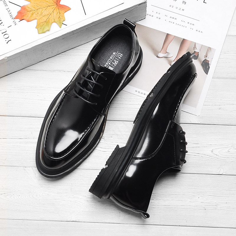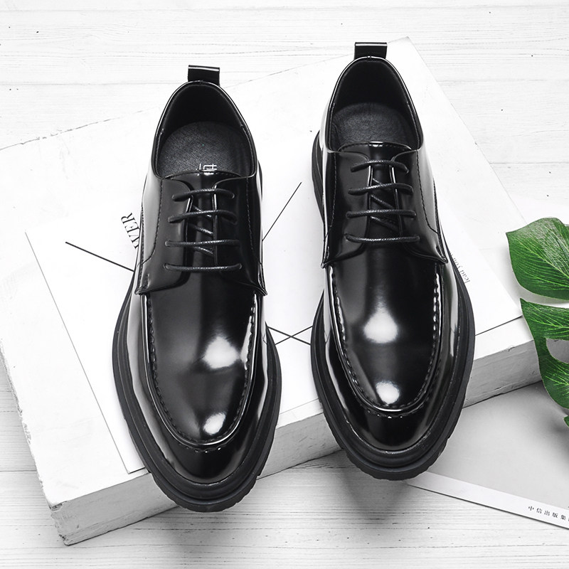 Spring High Quality Patent Leather Wedding Shoes Men's English Korean Style Leather Lace-Up Business Formal Pointed Toe Small Leather Shoes