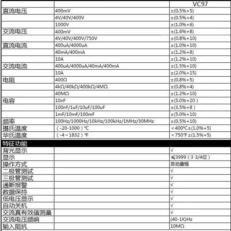 Victory VC97 digital multimeter automatic measuring range measurable capacitive temperature frequency backlight high-precision universal table