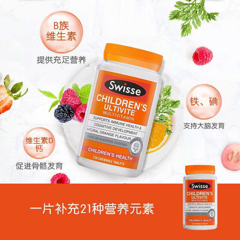Australian Swisse children compound multiple vitamin minerals chewy slices of orange taste canned imported 120 tablets
