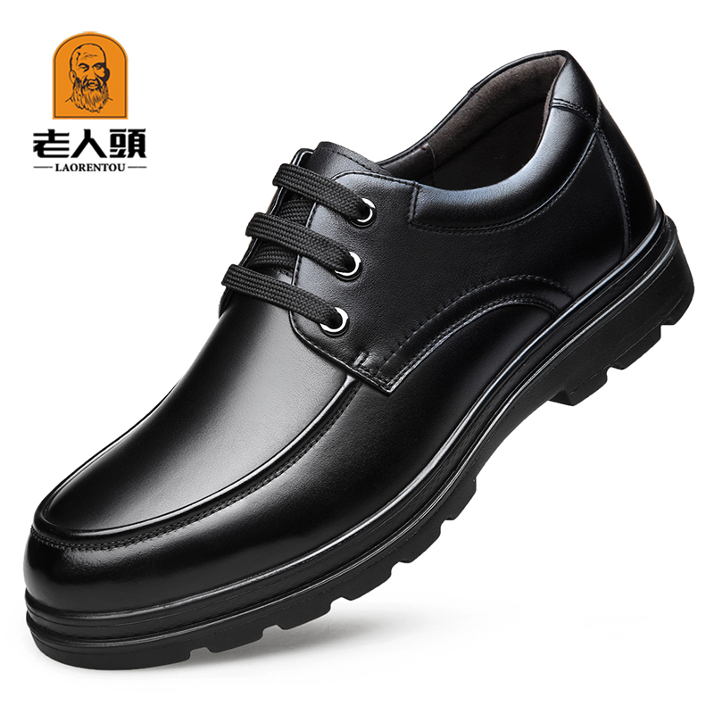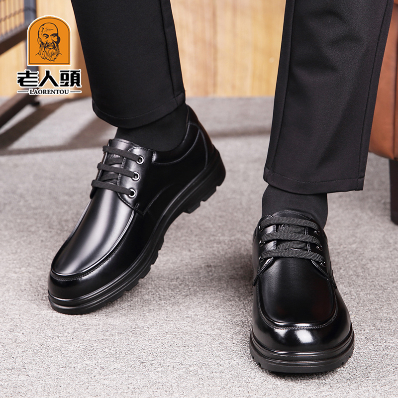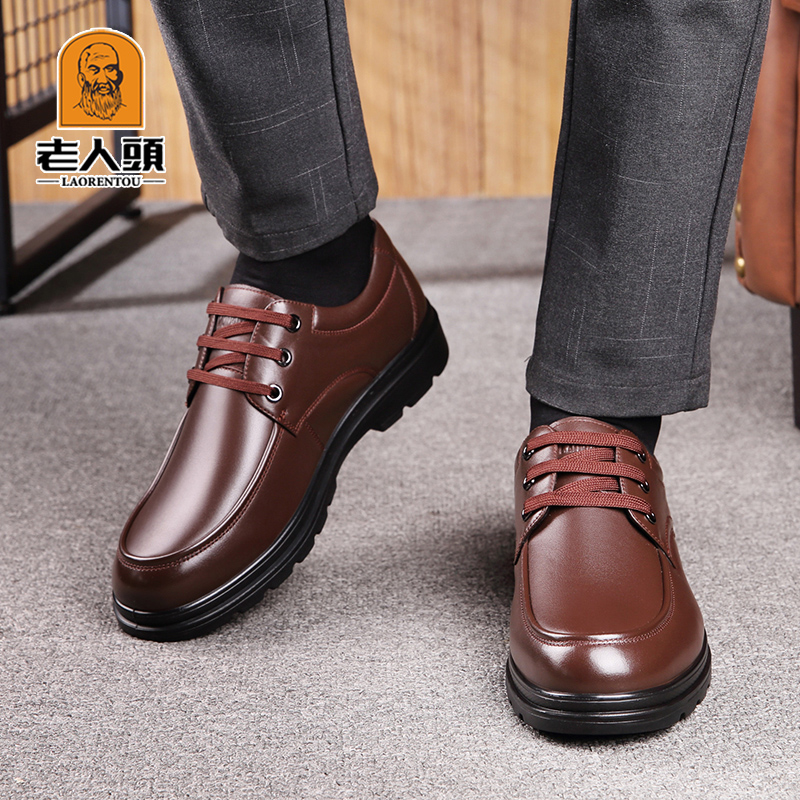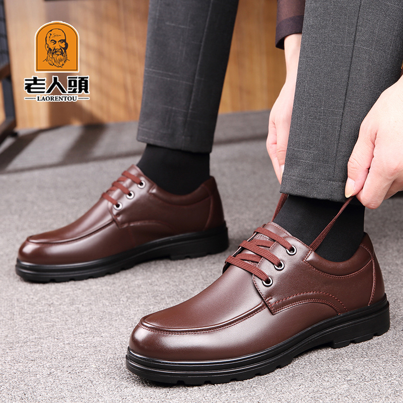 Old man's head spring business leather shoes men's leather business casual dress breathable thick bottom wide head middle-aged dad men's shoes