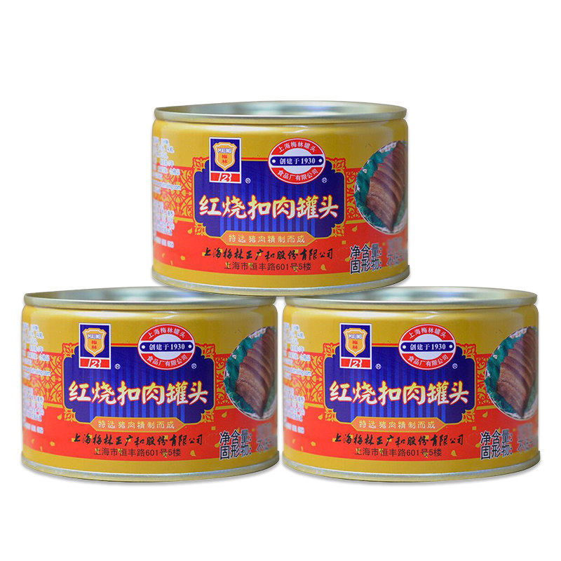 Shanghai Meilin braised canned pork 397g*3 cans served with cooked pork luncheon meat army canned ready-to-eat