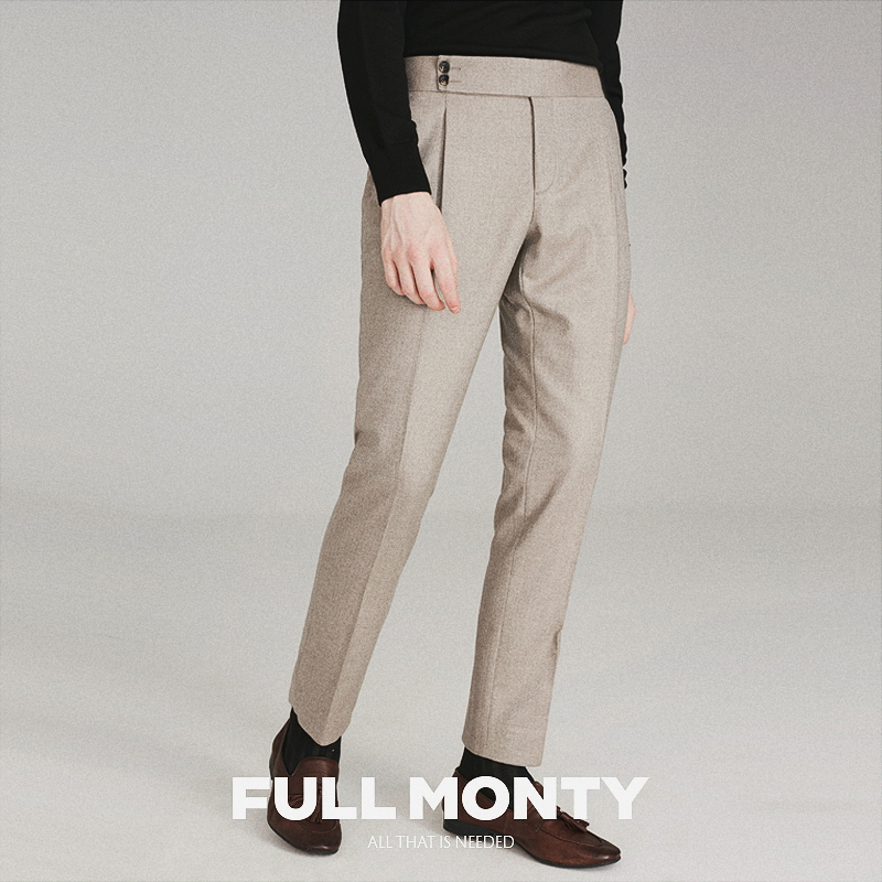 FULL MONTY Naples pants beige men Business slim wool suit pants casual pants