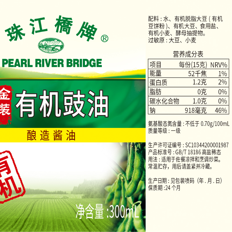 Pearl Jiangqiao Organic Soy Sauce 300mlx6 small bottle brewed organic soybean sauce fried cool and flavored