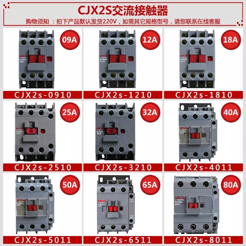 Delixi AC Contactor CJX2s-0910 1210 1810 2510 32104011 65 80 95A