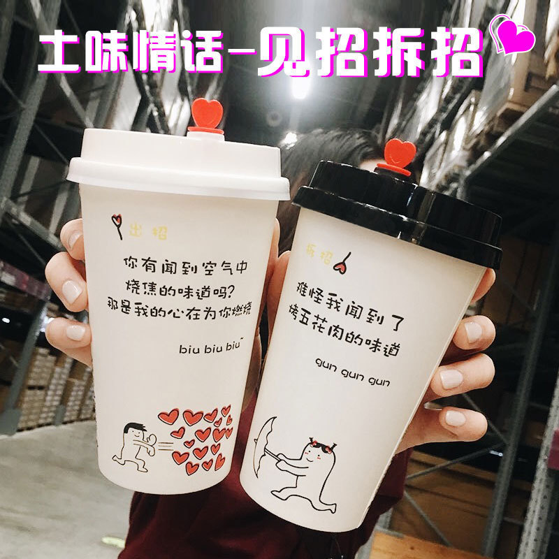 Native Love Story Thickened Disposable Net Red Milk Tea Cupcake Coffee Hot Drink Pack Cup 500ml Mixed Paper Cup