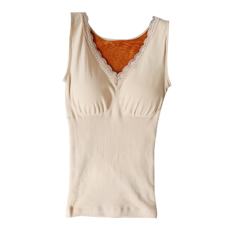 Thickening and fleece bottoming shirt winter body sculpting body lace V-neck heating shirt tight top
