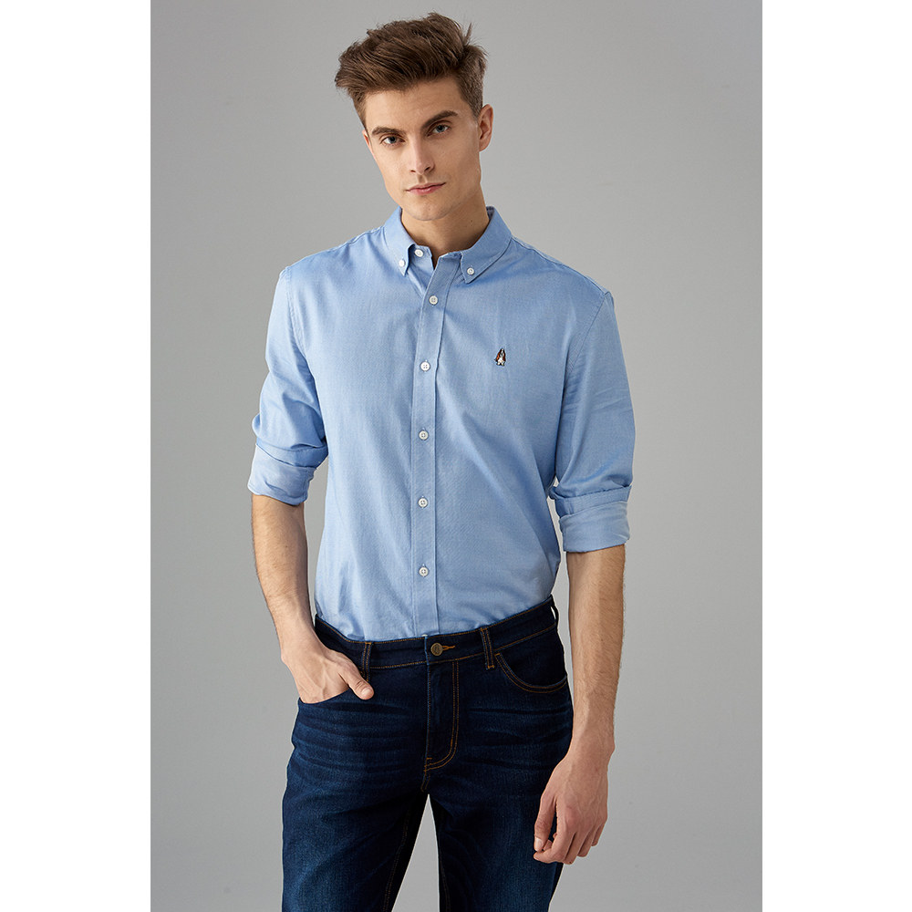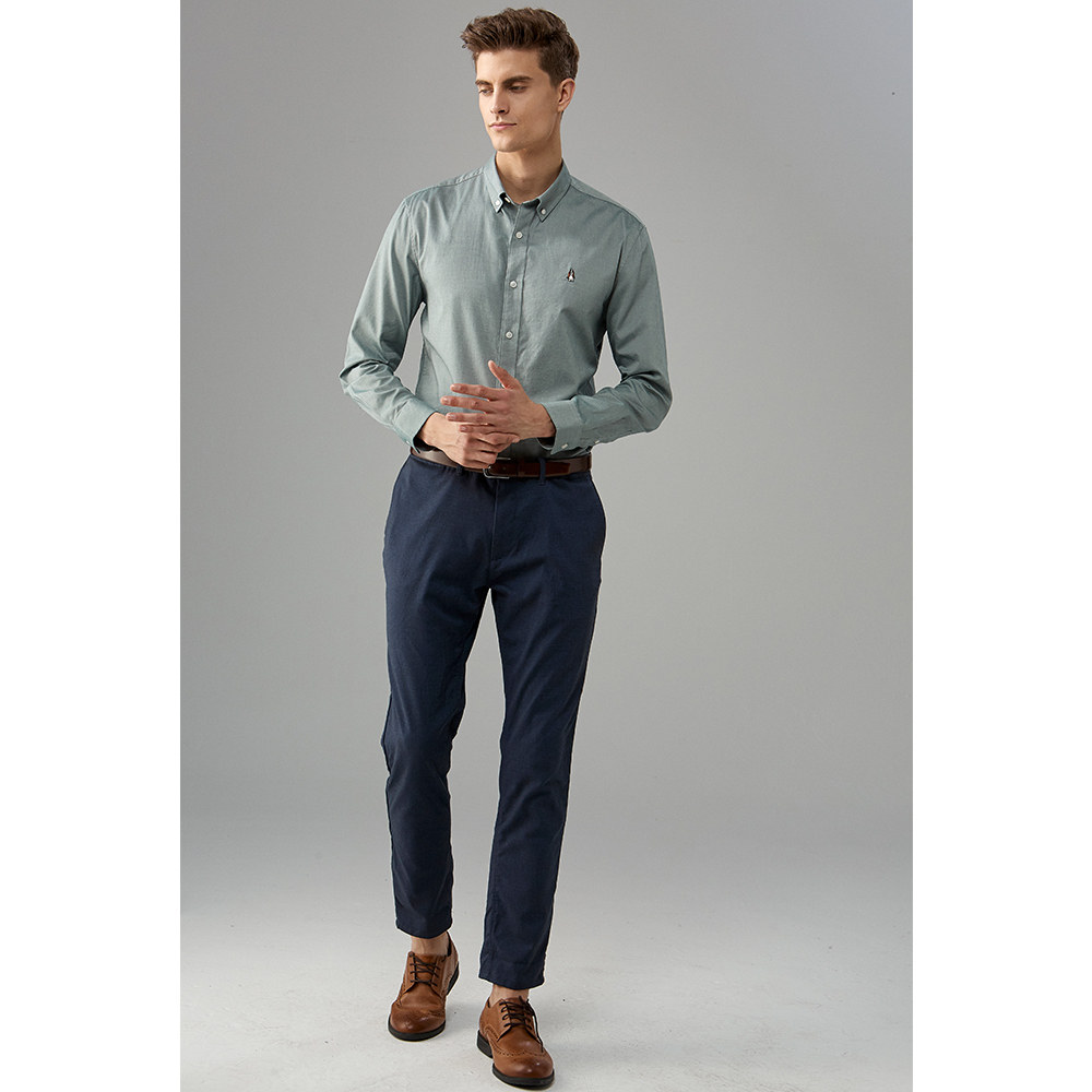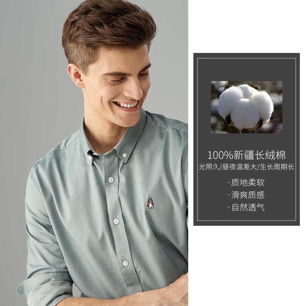 Hush Puppies Leisure Steps Men's Clothing New Lining Spring Autumn Season Pure All-cotton Long Sleeve Shirt PA-28506D