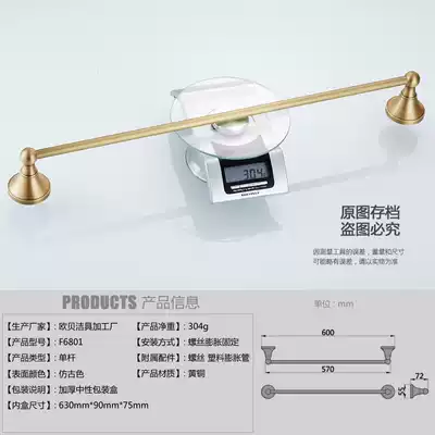 European antique brass towel rack single rod bathroom towel rack dressing room towel bar bathroom personality hardware pendant