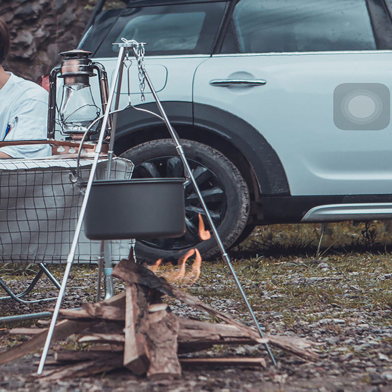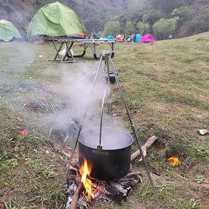 Outdoor pot grill tripod field folding charcoal bonfire camping stainless steel cookware portable