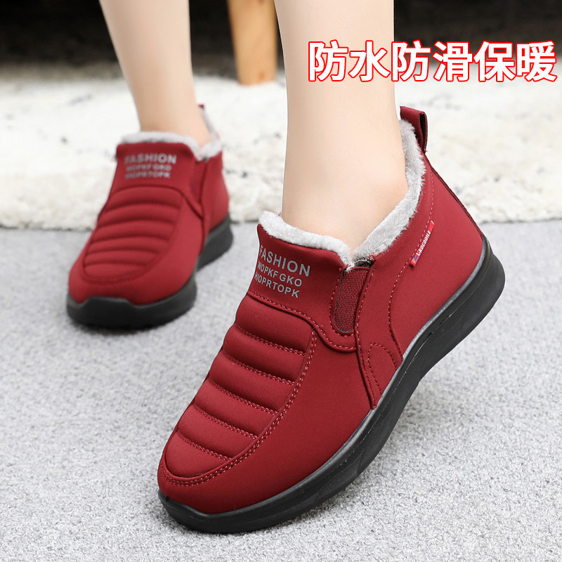 Old Beijing Cloth Shoes Lady Old Lady Old Lady Cotton Shoes Winter Warm Waterproof Anti Slip Plus Suede Middle-aged elderly grandma