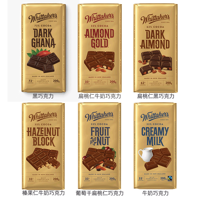 New Zealand Imported Snacks Candy Whittakers Whittaker Hazelnut Milk Almond Dark Chocolate 200g