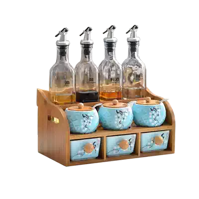 Seasoning box Seasoning tank set Household storage combination Ceramic glass soy sauce bottle Vinegar oil pot bottle jar Kitchen supplies