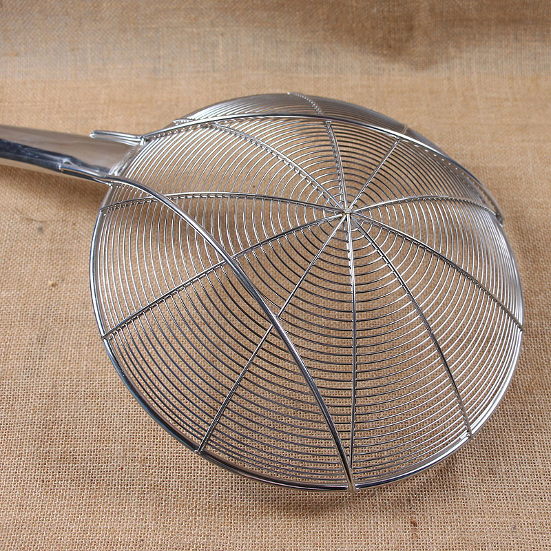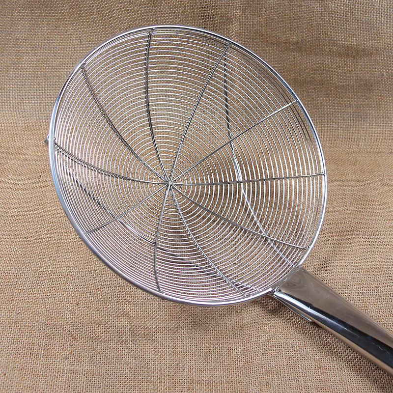 Industrial large colander steel wire fence filter spoon stainless steel extra large long colander factory canteen long handle fishing spoon