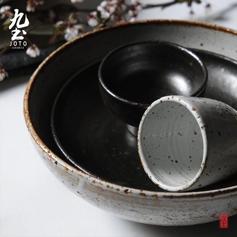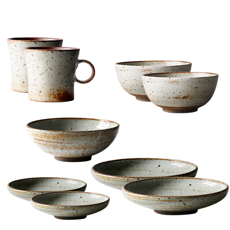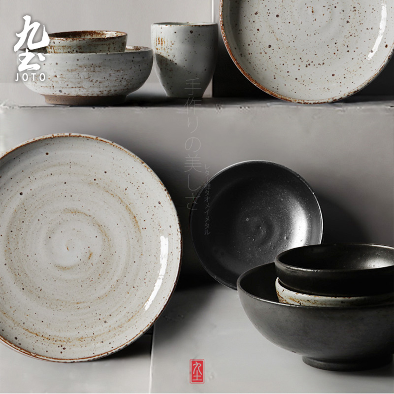 Handcrafted Coarse Pottery Retro Bowl Cutlery Cutlery and wind tray Dish Trays Dish Home Minimalist Daily Style Duo Gourmet Suit-Taobao