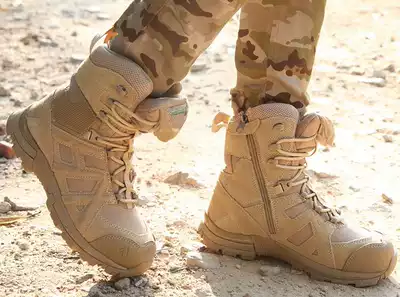Military fans sand color light desert boots men wear-resistant shock shoes boots hiking shoes tactical boots high tube combat boots
